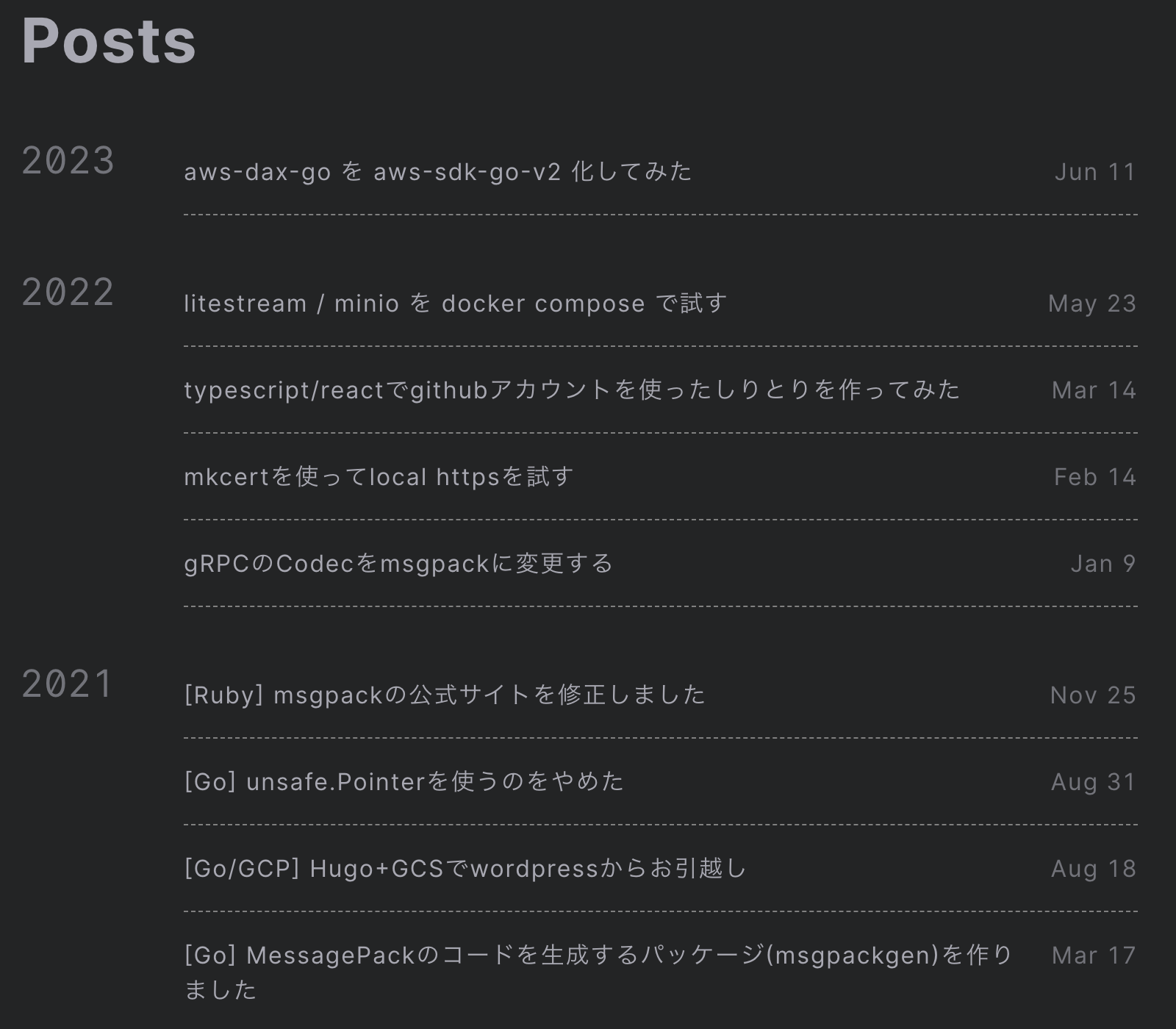 Posts はタイトルのみのリスト表示になっていて、こちらのほうが個人的には好み。